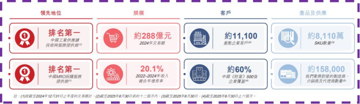 截至2025年6月30日前的12个月内,京东工业已为1.11万个重点企业客户提供定制采购系统服务;而在供应端,平台上共有15.8万家商家。截至2025年6月底,京东工业SKU数量达约8110万个,是中国最大的MRO交易平台。