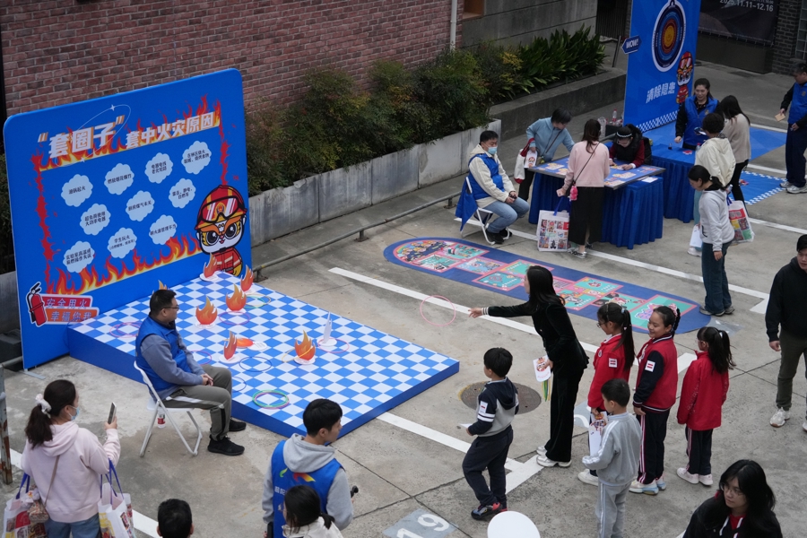 在现场,普陀消防联合上海消防设置了消防“九子游戏”区、消防知识科普、消防装备体验、消防文化展示等多个互动区域。