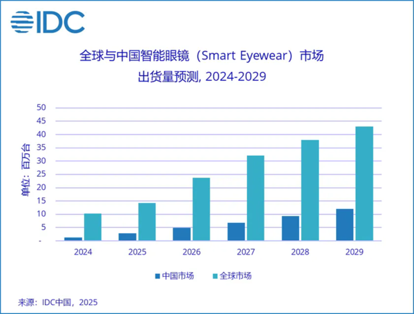 [CNMO科技消息]10月20日,IDC数据显示,2025上半年全球智能眼镜市场出货量达406.5万台,同比增长64.2%。IDC预测,到2029年全球智能眼镜市场出货量将突破4000万台金来源配资,而中国市场份额预计五年复合增长率(2024年-2029年)将达到55.6%,增速位居全球首位。