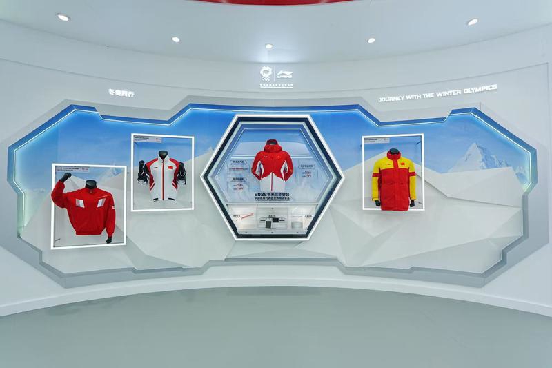 “冬奥同行”展区内,承载着岁月记忆的领奖服静静陈列,2026年米兰冬奥会中国体育代表团室外领奖装备摆在了显眼的位置,红白相间的配色灵动大气,既贴合冬日奥运的氛围,又彰显着中国风采。