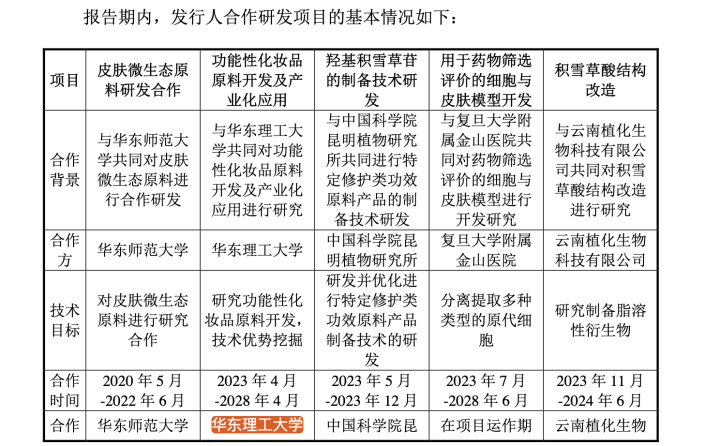 研发投入亦处于中等水平。公司报告期内的研发费用率在5%-8%之间波动(2022年5.7%,2023年8.4%,2024年7.9%)。虽然公司声称“持续加大研发投入”,低于部分科创板上市的生物科技公司,例如锦波生物2022-2024年研发费用率分别11.5%、10.9%和4.9%。《财中社》观察到,部分研发投入流向了与高校的合作研发(与中科院昆明植物所、华东理工大学等机构有合作),而非完全的自主底层技术突破。这暗示公司在核心技术的原创性上可能存在短板,更多是在应用层面的配方改良。