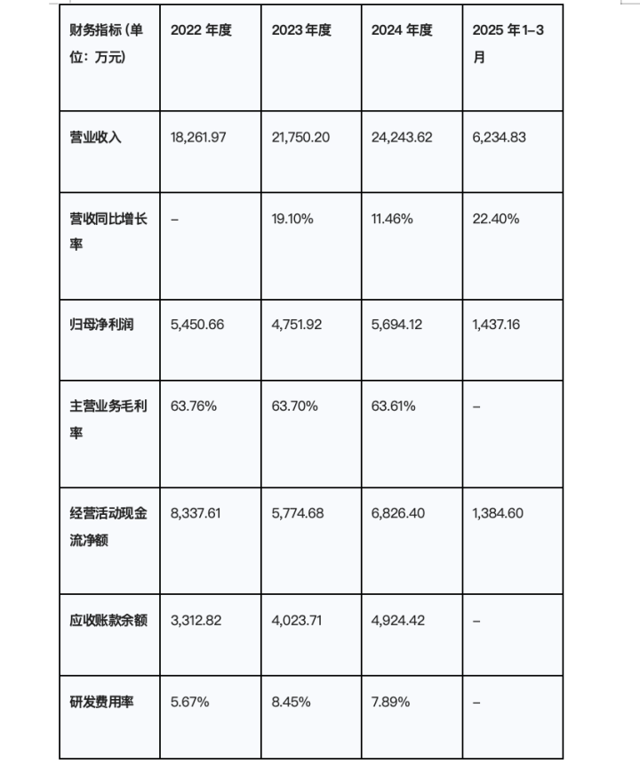 招股书来看,珈凯生物保持着不错的增长势头和盈利能力:营收规模在2022-2024年实现了从1.8亿元到2.4亿元的跨越,复合增长率超15%。公司的毛利率稳定在63%以上,净利率维持在23%左右,显示出较强的盈利能力。